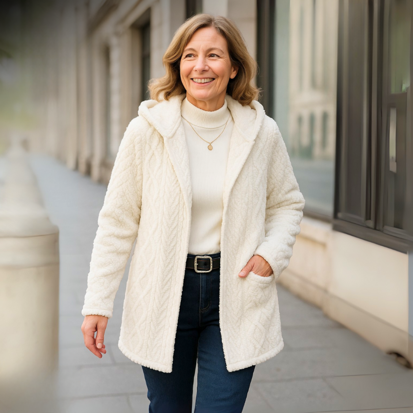 Enveloppez-vous de douceur et d’élégance avec notre veste en maille à capuche, la pièce incontournable pour affronter les journées fraîches avec style. Confectionnée dans une maille tricotée épaisse au motif torsadé raffiné, cette veste allie le charme du tricot traditionnel à la praticité d’un design moderne.